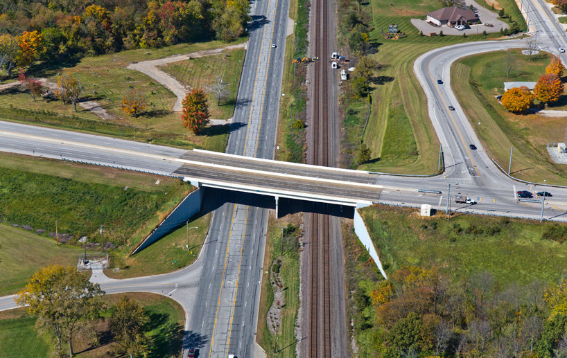 This project consists of a new one-mile transportation corridor between CR 26 and CR 28. The four-lane, divided suburban arterial highway involved a new horizontal and vertical alignment, superelevation, drainage analysis, and signalized intersections. The project also included a new 6-span, 750-ft, prestressed concrete bulb-tee bridge over the Elkhart River and a new 225-ft, 2-span, prestressed concrete bulb-tee bridge over US 33 and Norfolk Southern railroad tracks. The project also included reconstruction of one mile of existing roadways on Rieth Boulevard, CR 45, and CR 28. Wetland mitigation plans included grading and planting plans for the construction of five separate wetland mitigation sites within the proposed project corridor.