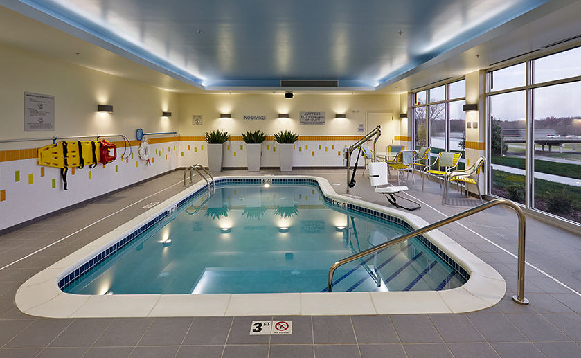 American Structurepoint provided architectural and structural design for this 99-keyed, 4-story, 55,000-sft hotel. This Marriott hotel is designed to the latest brand and owner/hospitality requirements. To complement the seven various room type configurations, the facility incorporates an indoor pool, exterior patio area, workout room, meeting room, and the signature lobby and breakfast areas.