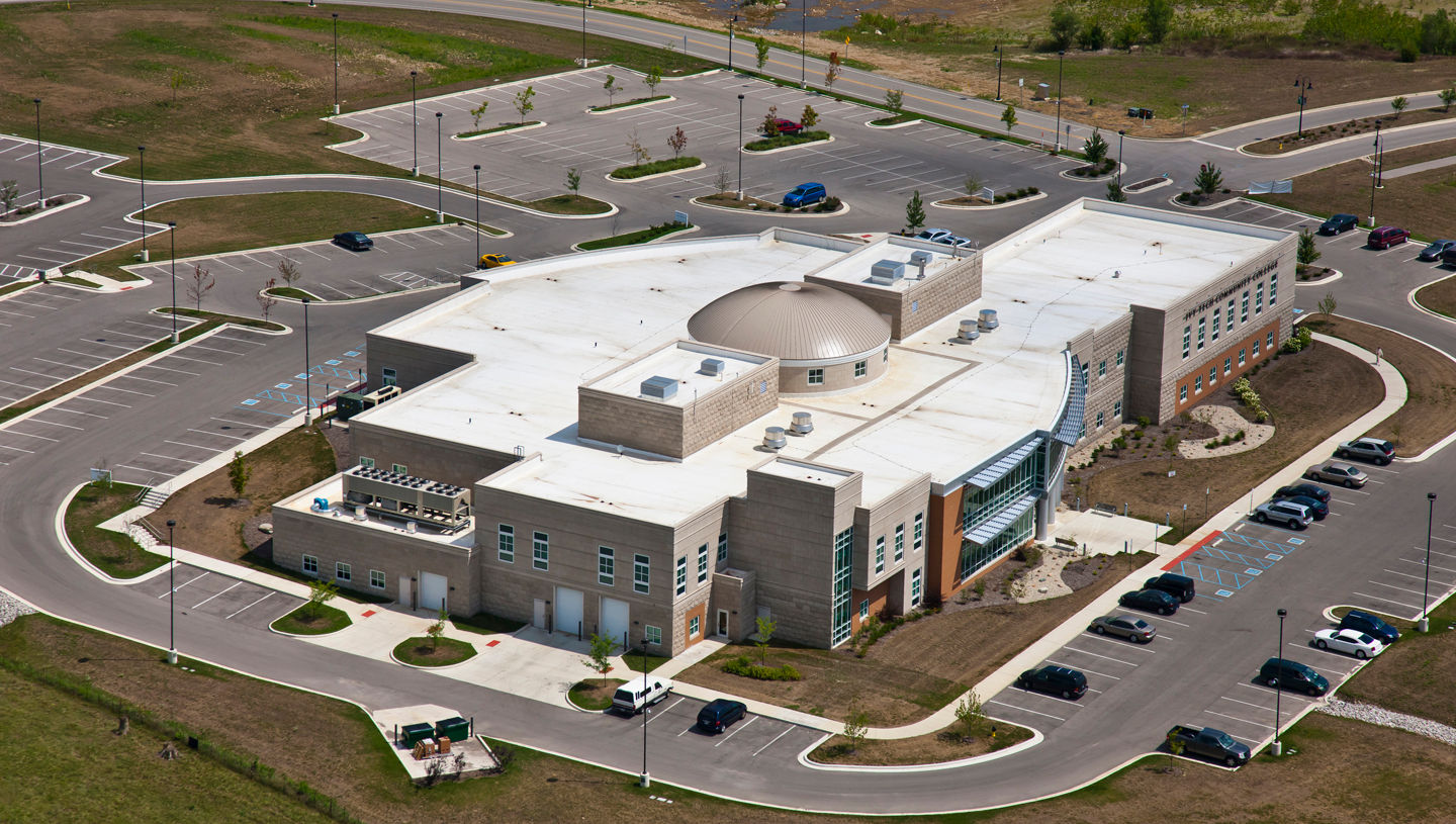 Student enrollment at the current Logansport campus has seen tremendous growth, necessitating this new facility. The 2-story higher-education facility is located on the outskirts of Logansport. This unique facility and adjacent infrastructure improvements provide a high-quality learning environment and serve as a catalyst for development of additional amenities and businesses. The building design features a striking curvilinear facade, 2-story central rotunda, and dramatic landscape architecture with plantings to accent the sloping natural grade surrounding the perimeter. In addition to the structural engineering of the building, civil engineering included 1,500-foot extensions of water and sewer, the extension of access roads to the site, and master planning of a 60-acre site.